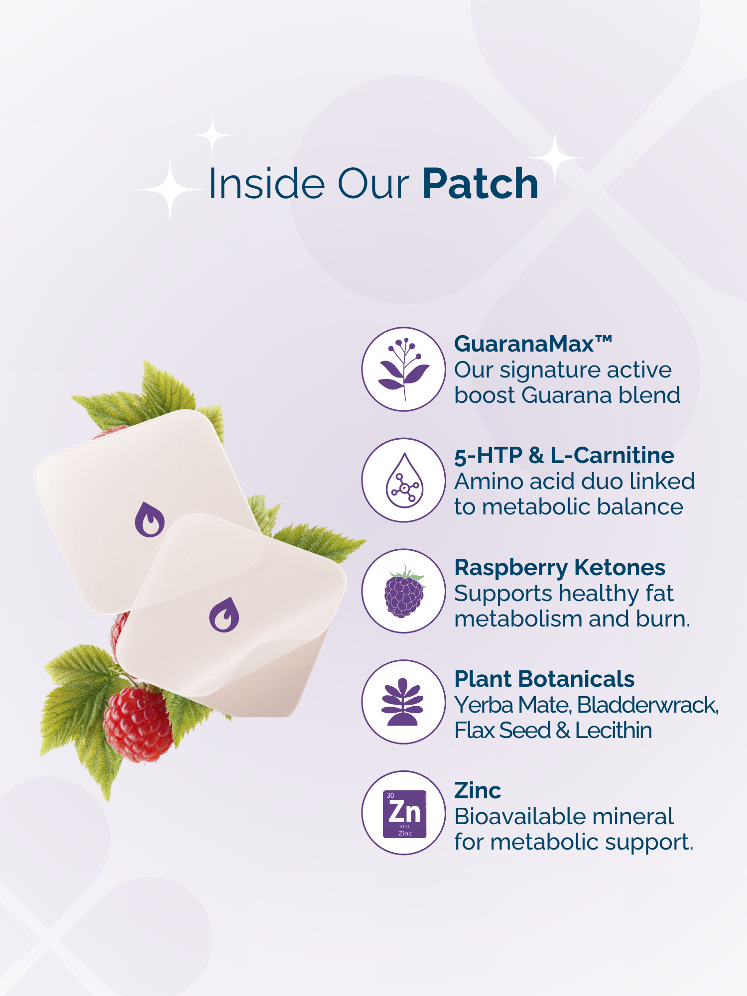 Ignite your inner fire with Shape Shifter™, our metabolism patch powered by Guarana, Yerba Mate, Raspberry Ketone, and citrus aromatherapy to help fuel energy and movement.