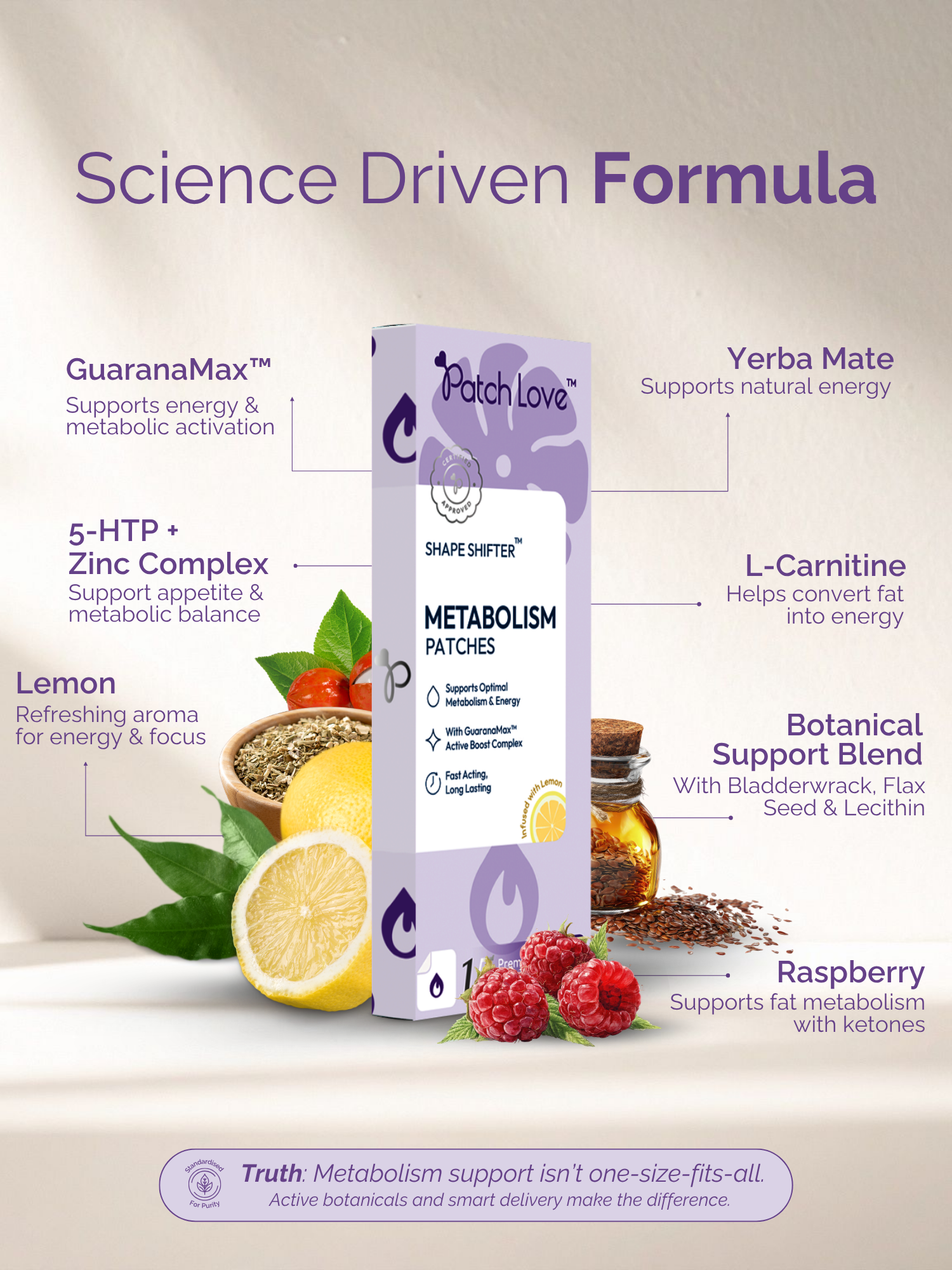 Ignite your inner fire with Shape Shifter™, our metabolism patch powered by Guarana, Yerba Mate, Raspberry Ketone, and citrus aromatherapy to help fuel energy and movement.