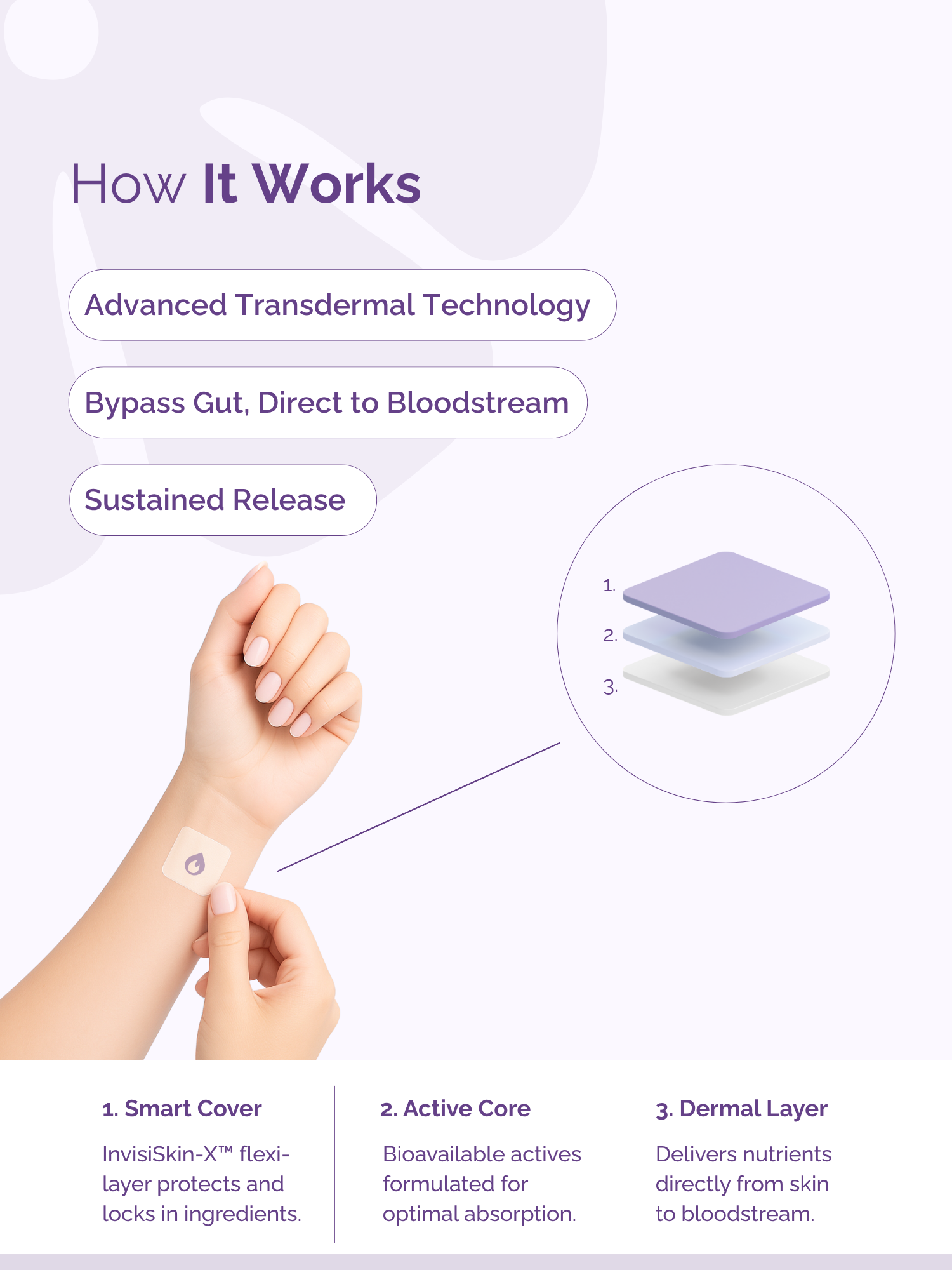 Each patch is designed to release nutrients steadily for 8-12 hours, giving you long-lasting support throughout the day (or night).