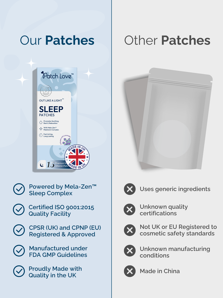 Infused with natural sleep supporters like magnesium, hops, passion flower our sleep patch helps you drift off smoothly and stay snoozing soundly. Just stick it on before bed and let it guide you into deep, restful sleep to wake refreshed and rested.